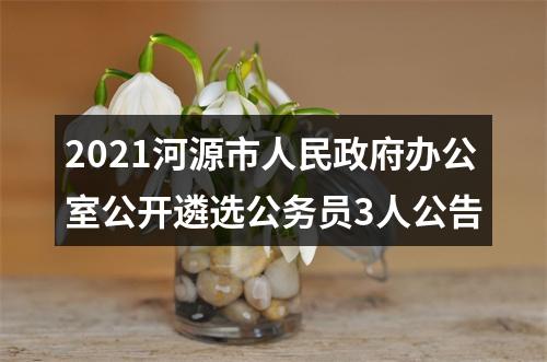 为进一步拓宽选人用人渠道,增强干部队伍活力,根据《 中华人民共和国公务员法》和《公务员公开遴选办法(试行)》,并经中共河源市委组织部同意,河源市人民政府办公室决定面向全市公开遴选公务员3名,现将有关事项公告如下: