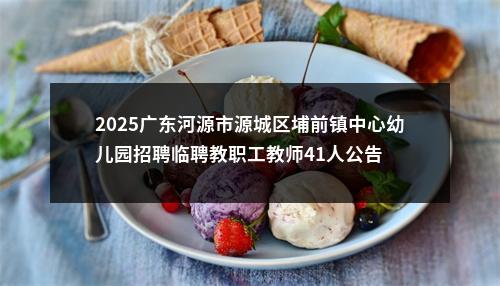 【2025广东河源市源城区埔前镇中心幼儿园招聘临聘教职工教师41人公告】相关岗位:
