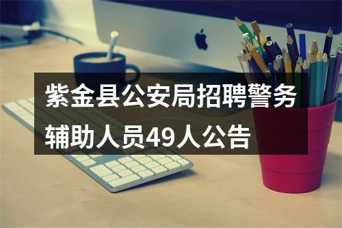 根据工作需要,紫金县公安局面向社会公开招聘49名警务辅助人员。有关事项公告如下: