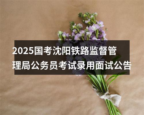 原标题:沈阳铁路监督管理局2025年公务员考试录用面试公告