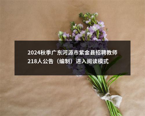 【2024秋季广东河源市紫金县招聘教师218人公告(编制)进入阅读模式】相关岗位: