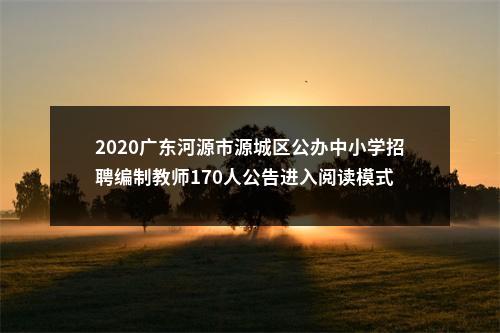 原标题:2020年河源市源城区公开招聘公办中小学教师公告