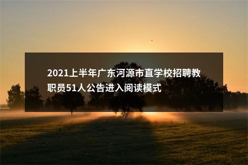 为做好河源市市直有关学校教职员招聘工作,根据《广东省事业单位公开招聘人员办法》(广东省人民政府令第139号)精神,经河源市人力资源和社会保障局同意,现就河源市市直有关学校2021年上半年公开招聘教职员有关事项公告如下。