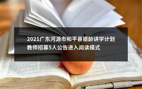 【2021广东河源市和平县银龄讲学计划教师招募5人公告进入阅读模式】相关岗位: